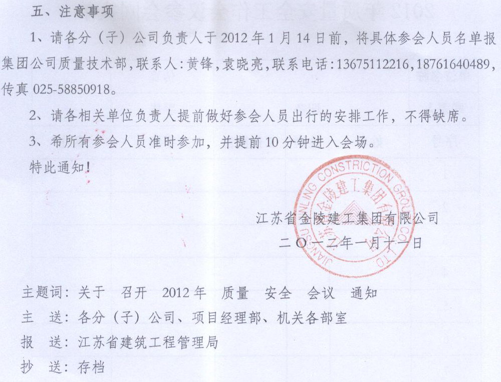 關(guān)于召開2012年質(zhì)量安全工作會議的通知